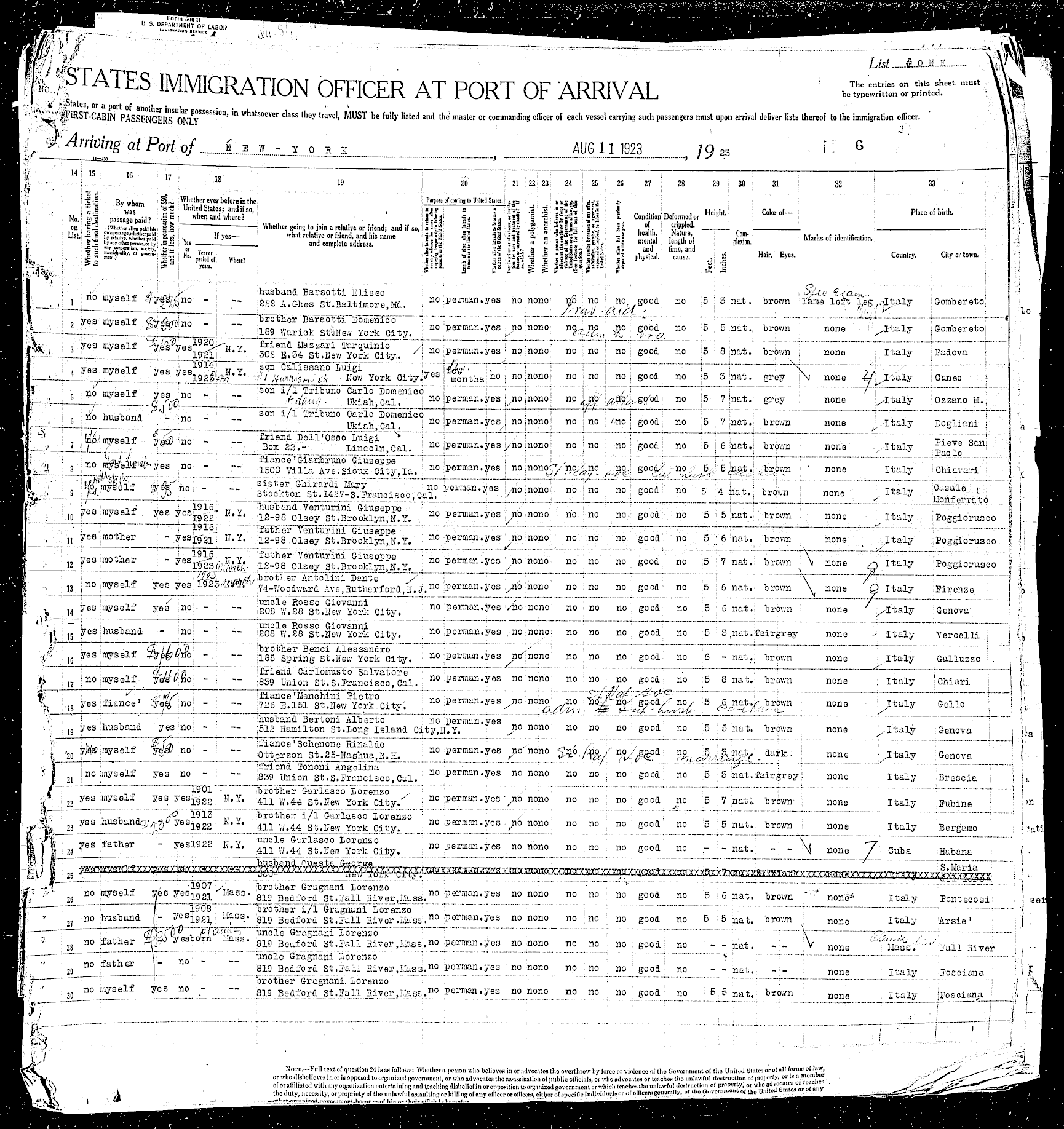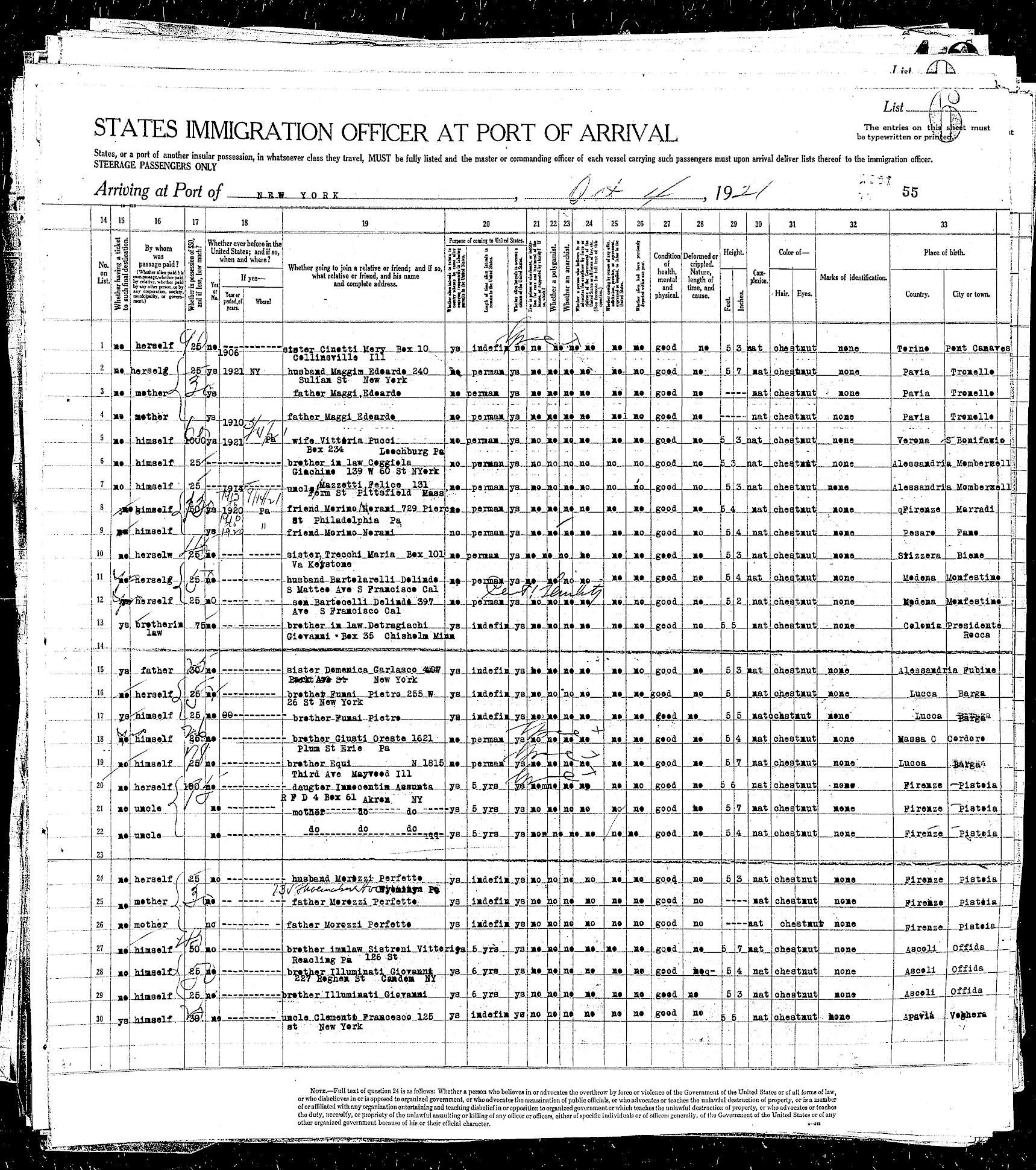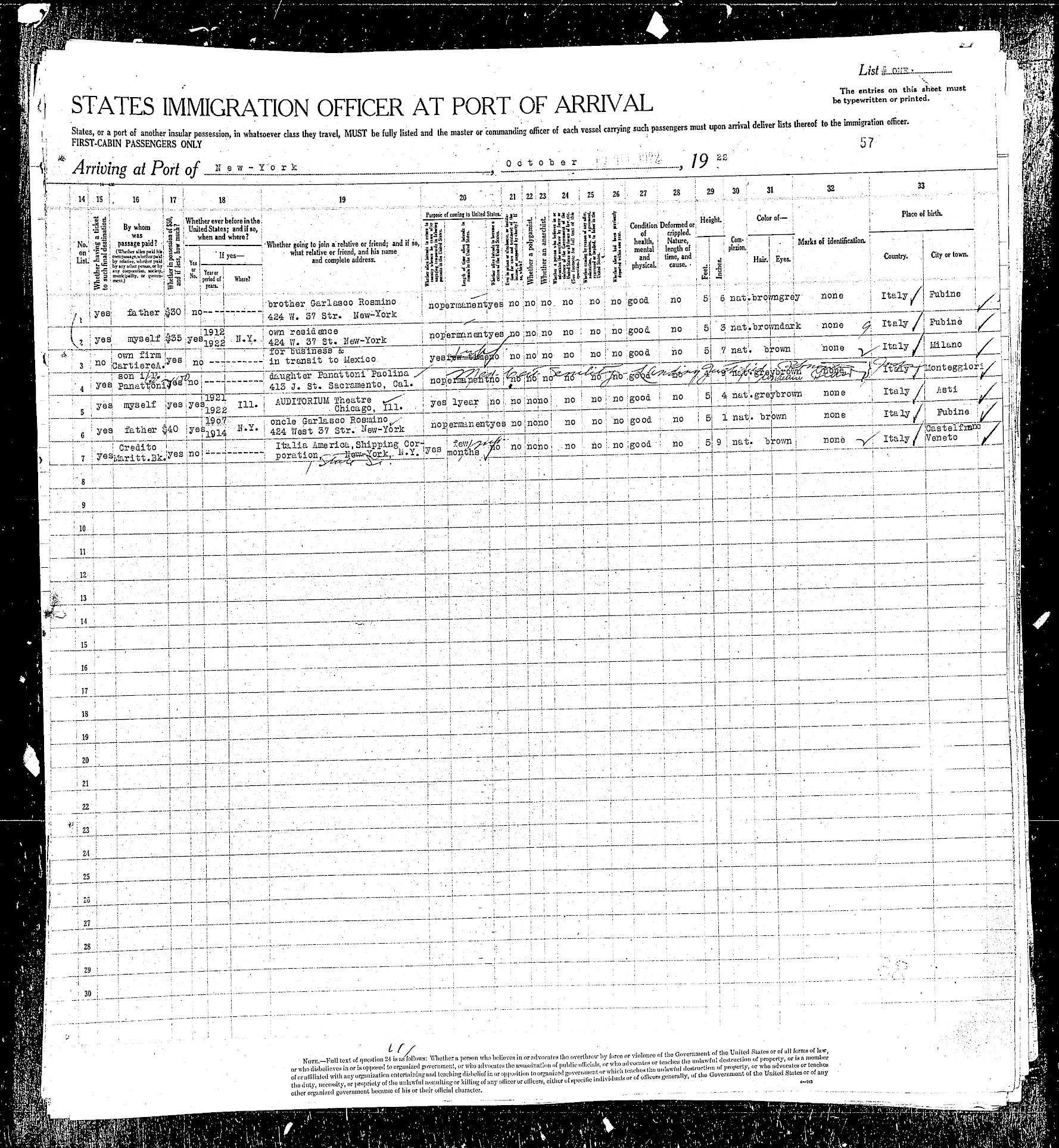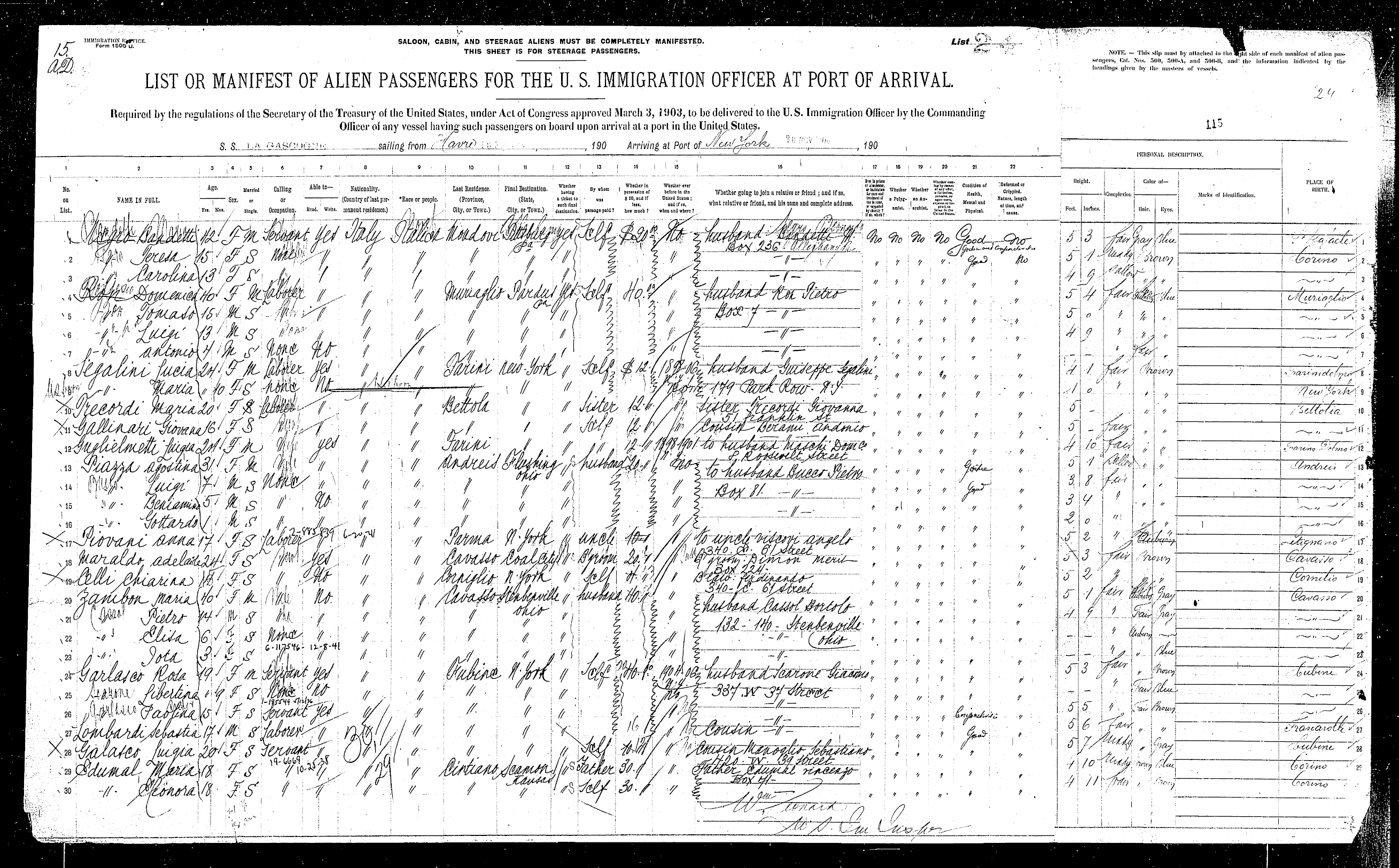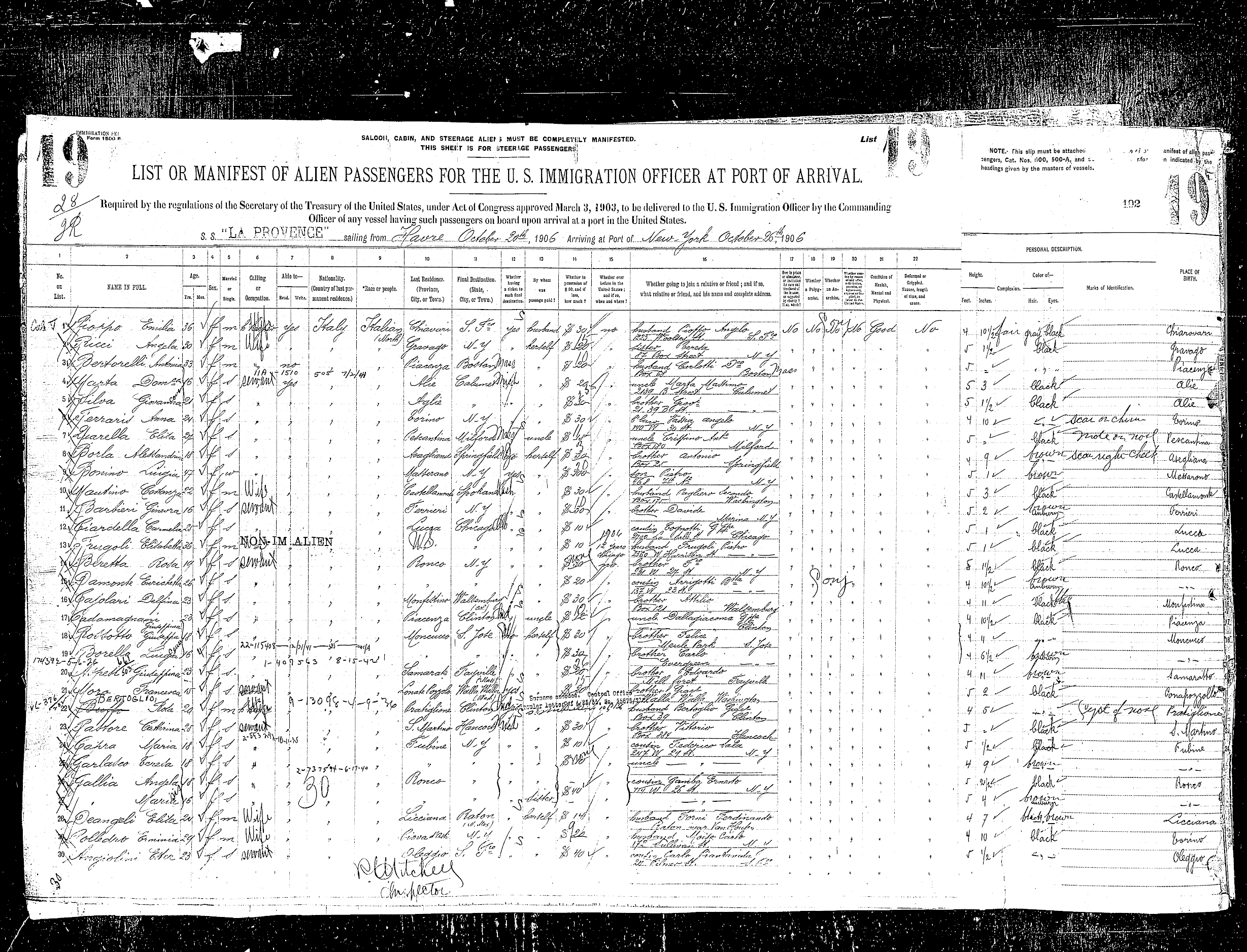 sailed from Le Havre, France, including the Rodeschini family from which my