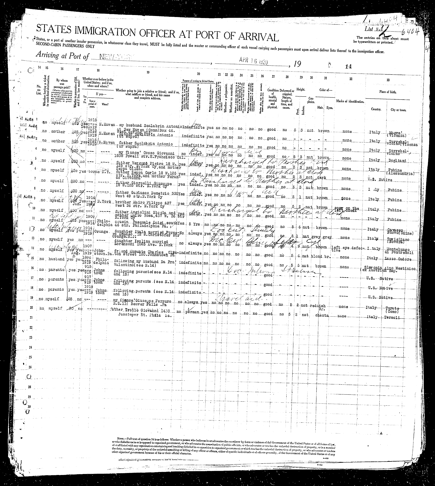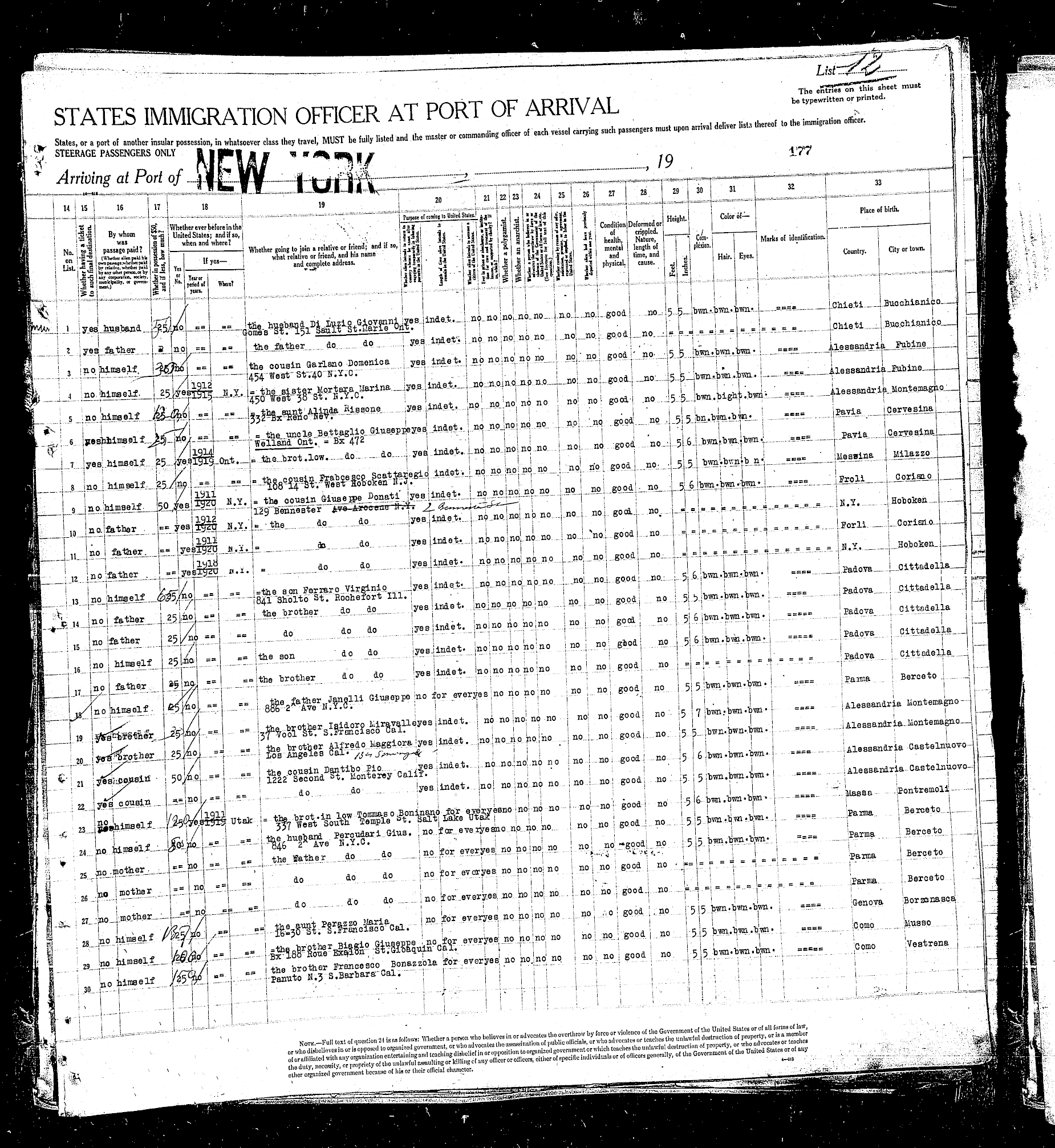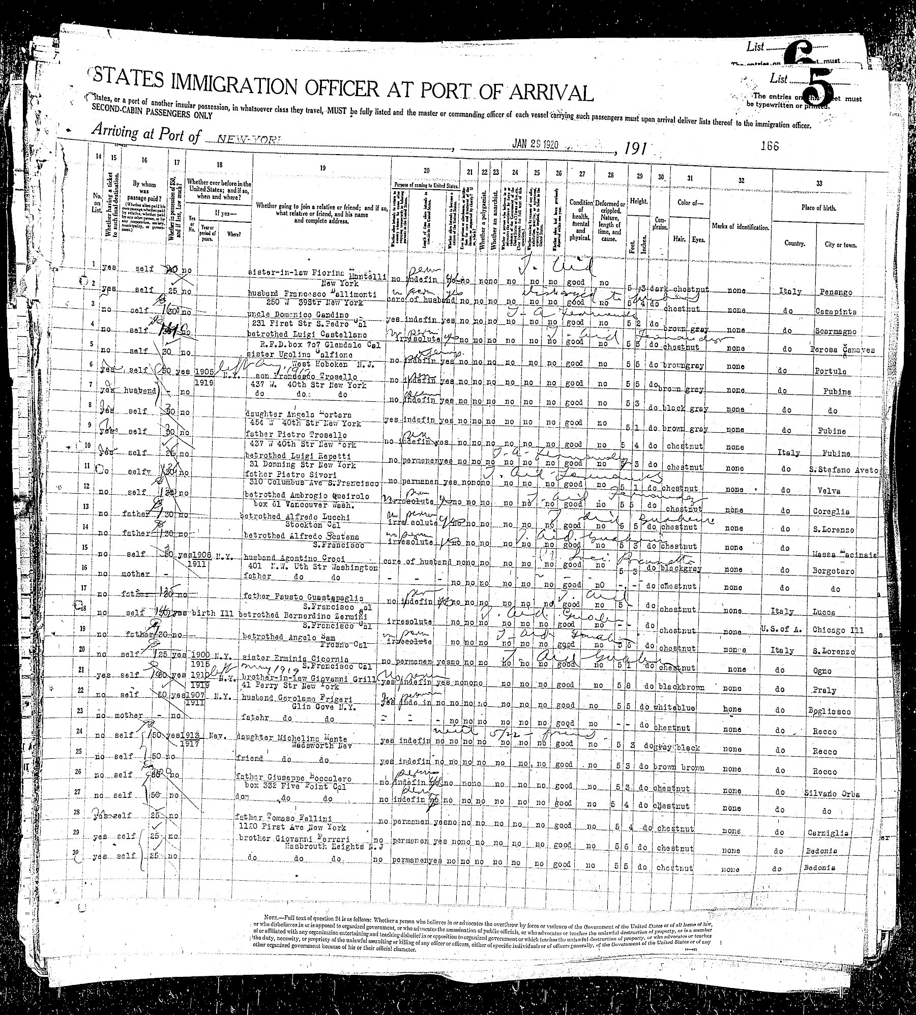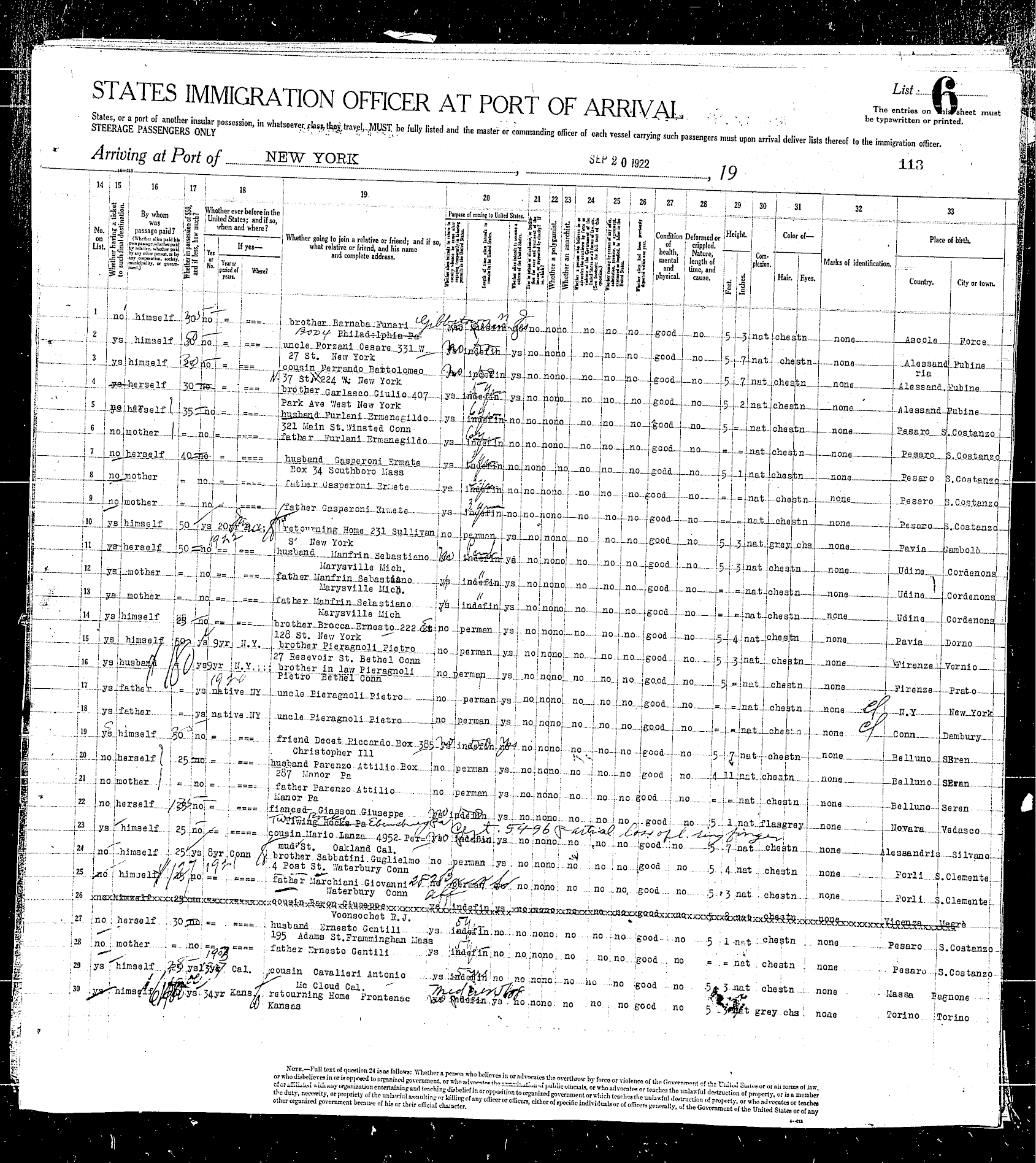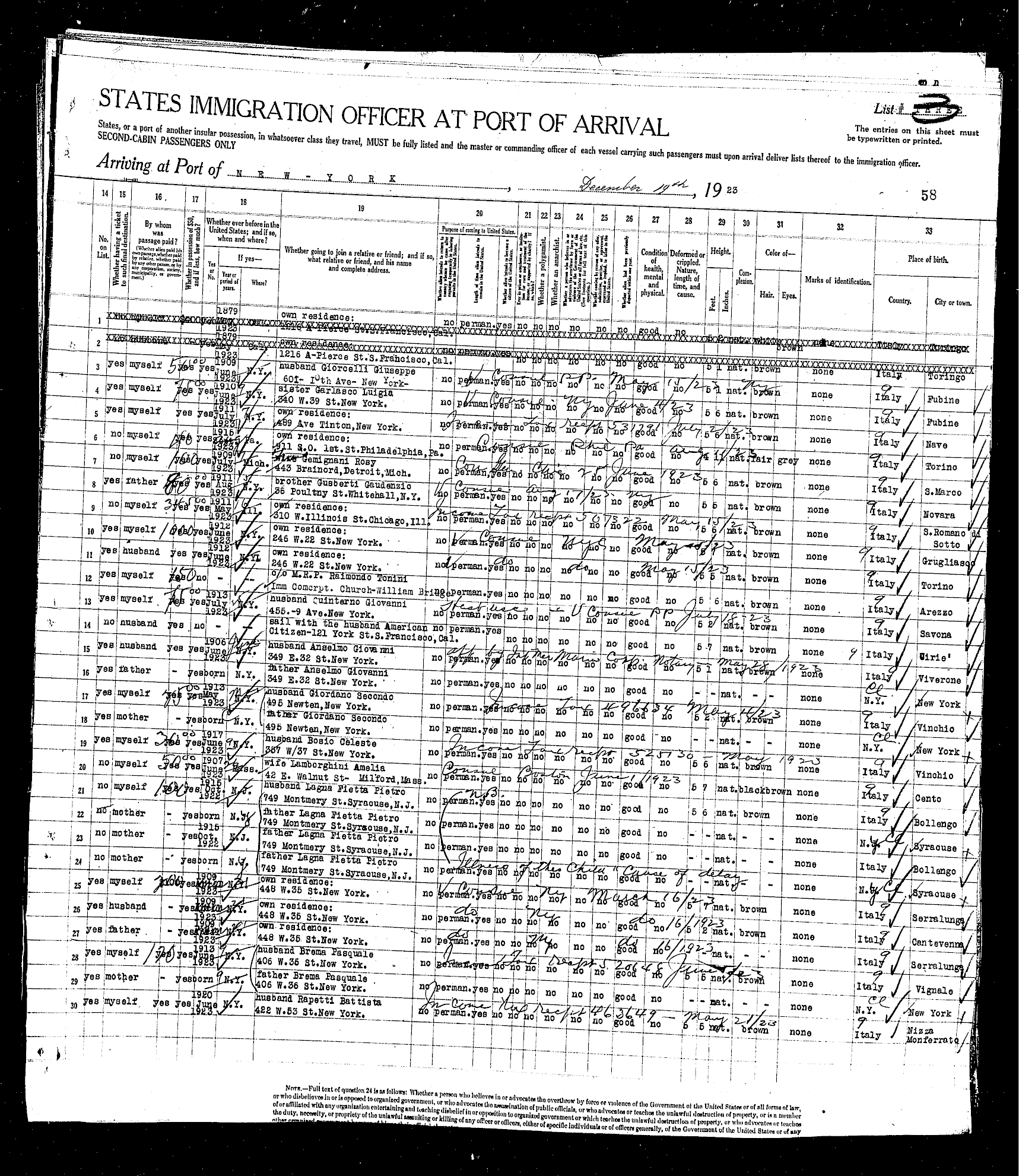 sailed from Le Havre, France, including the Rodeschini family from which my