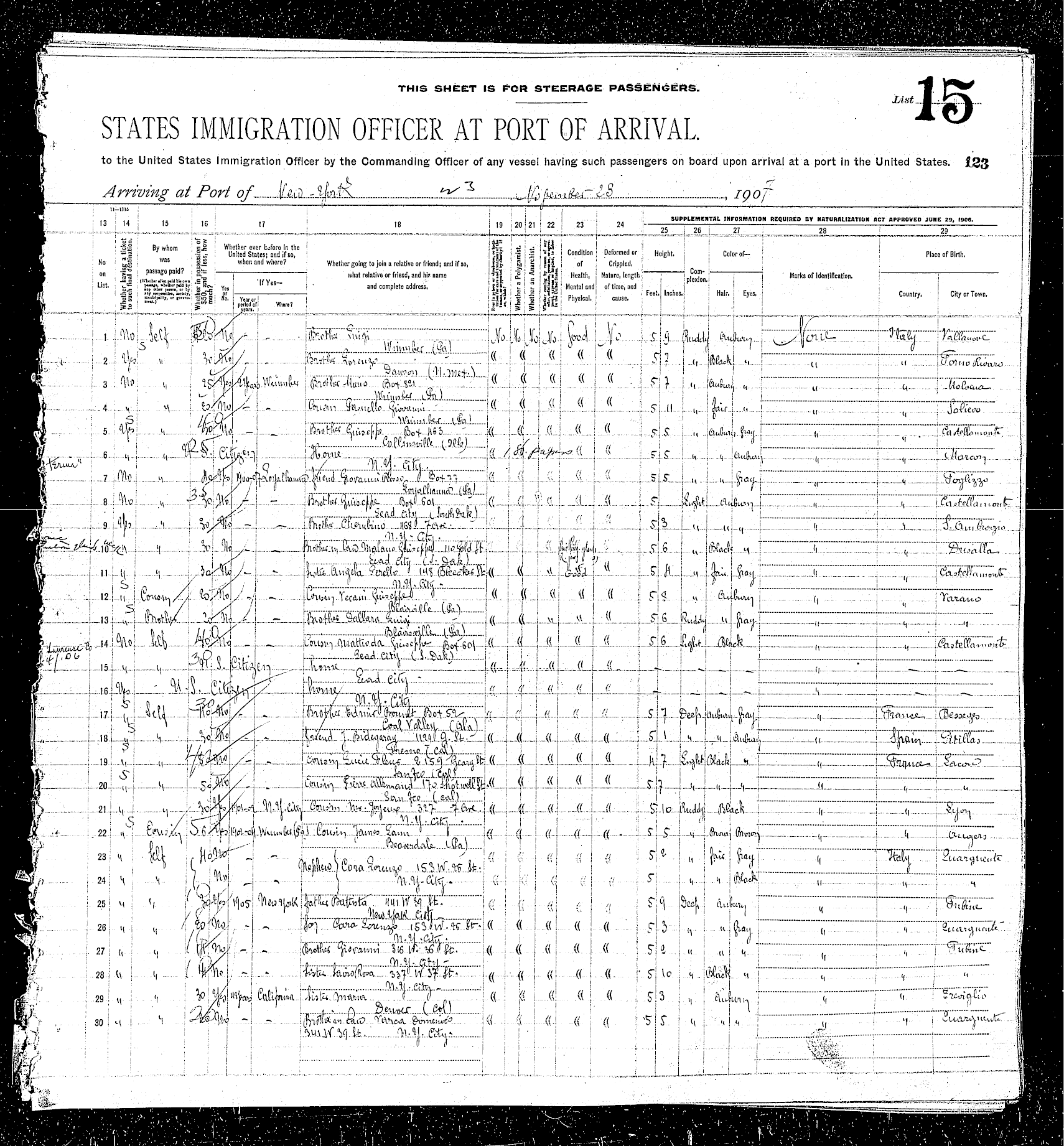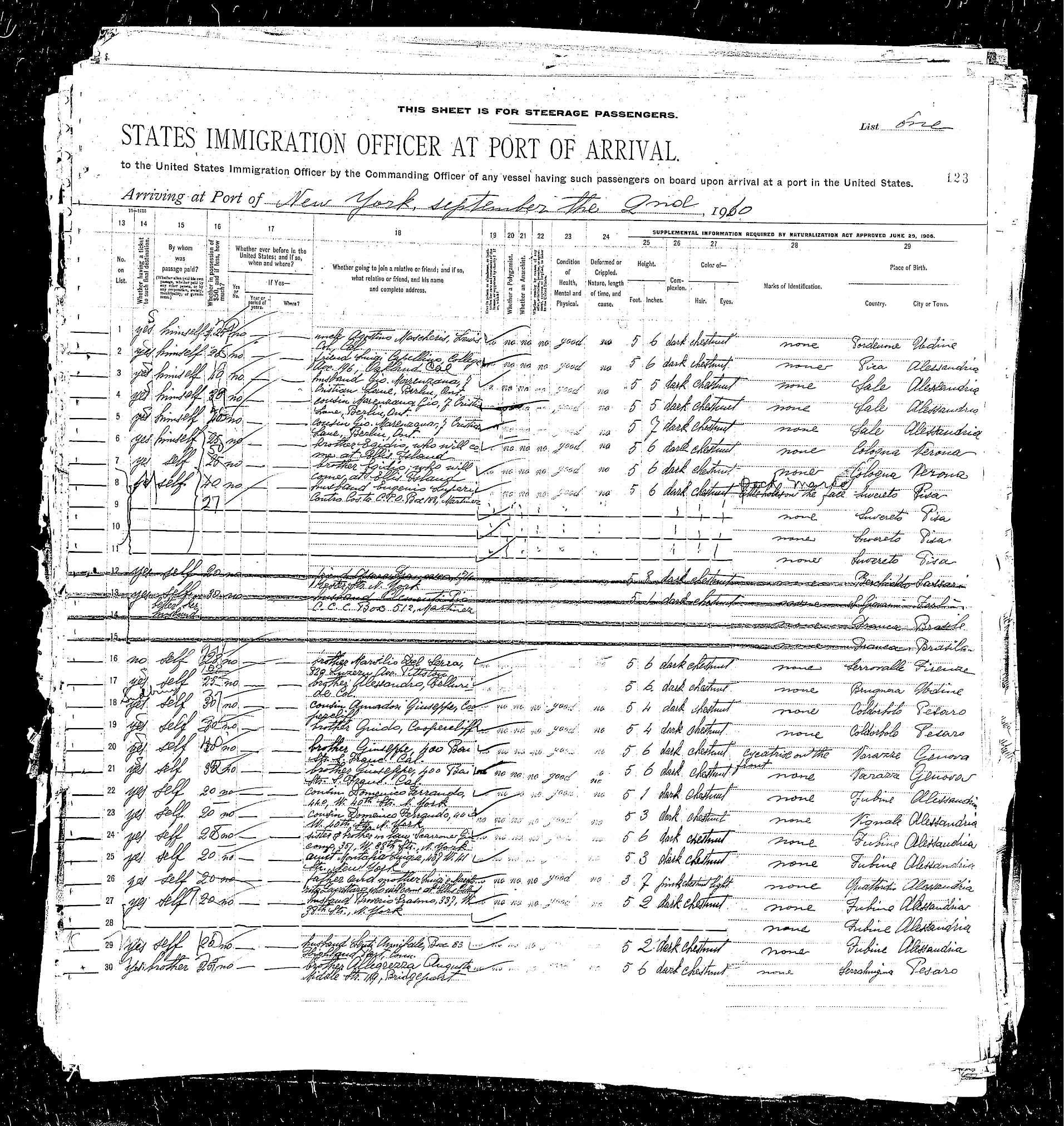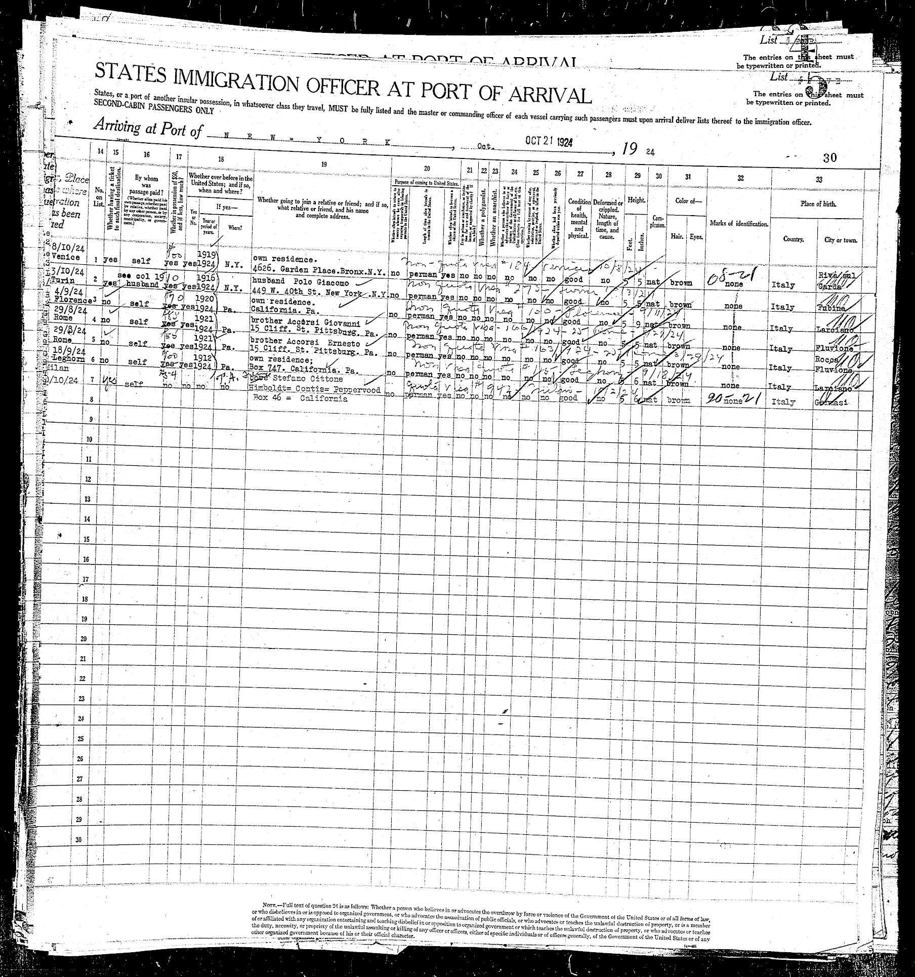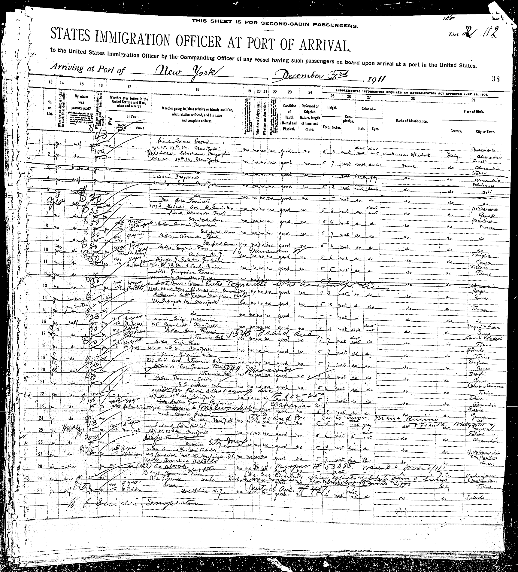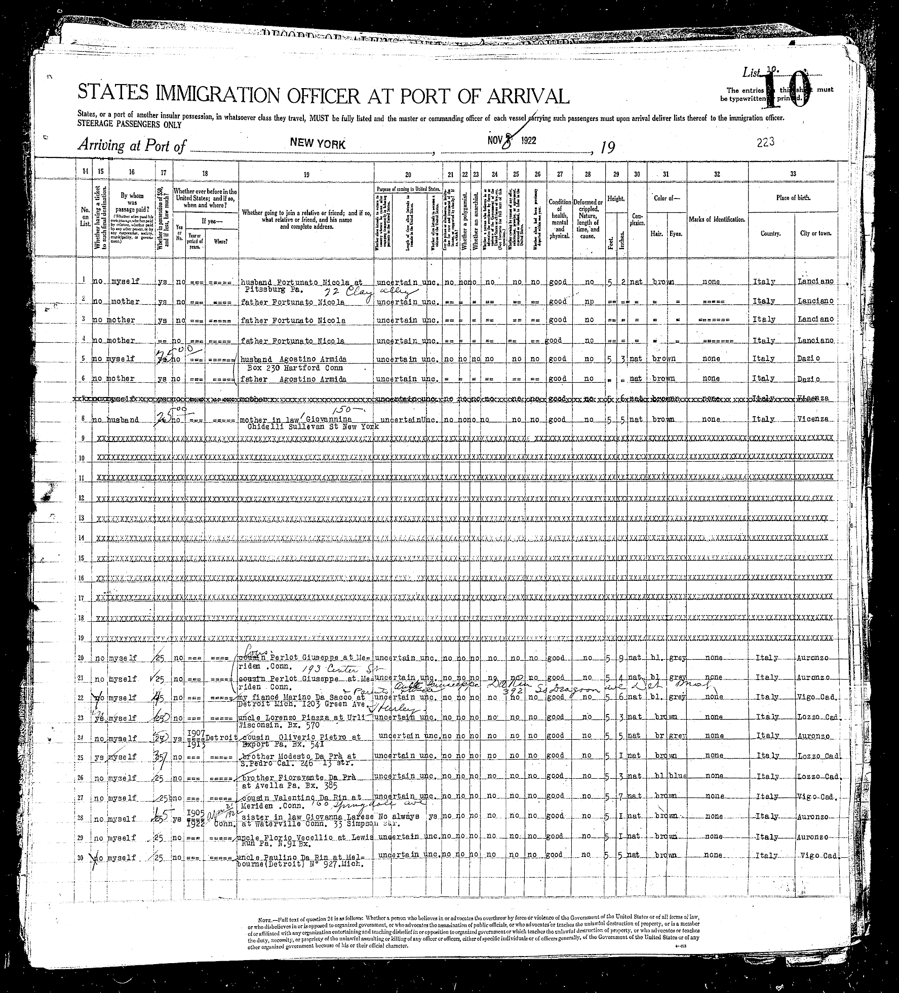 sailed from Le Havre, France, including the Rodeschini family from which my