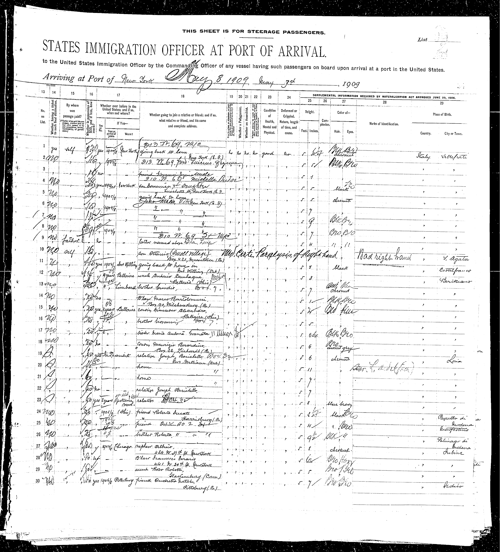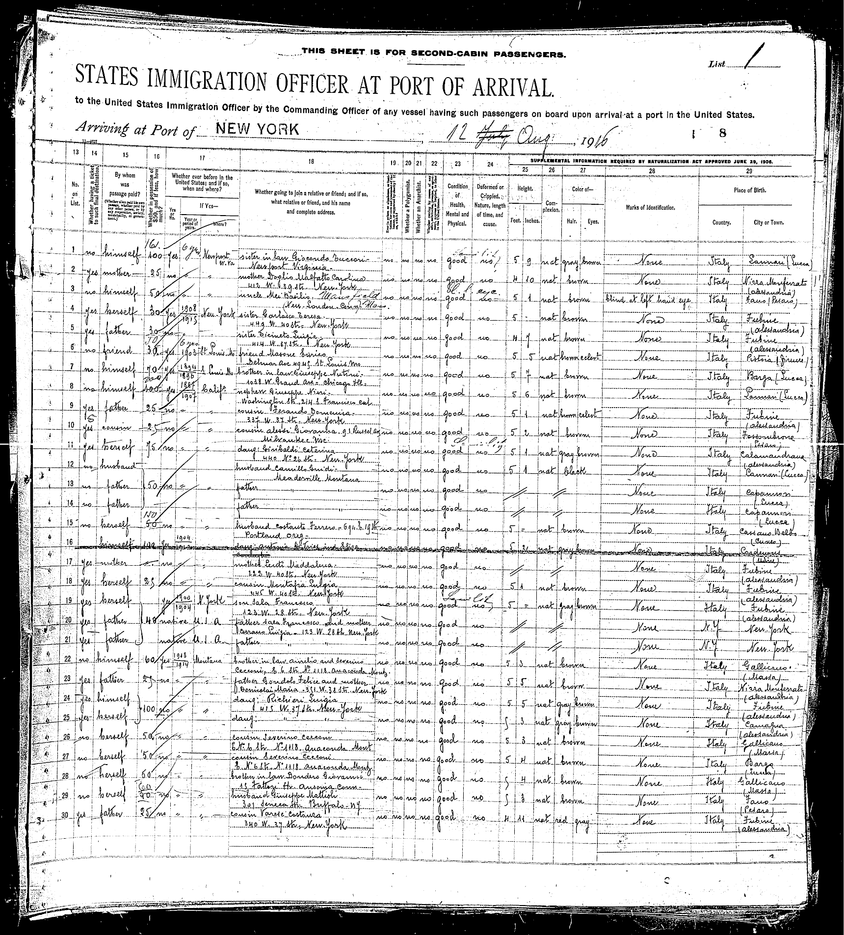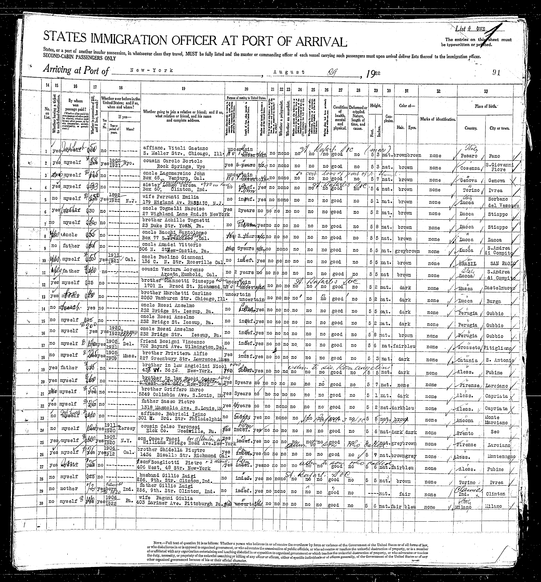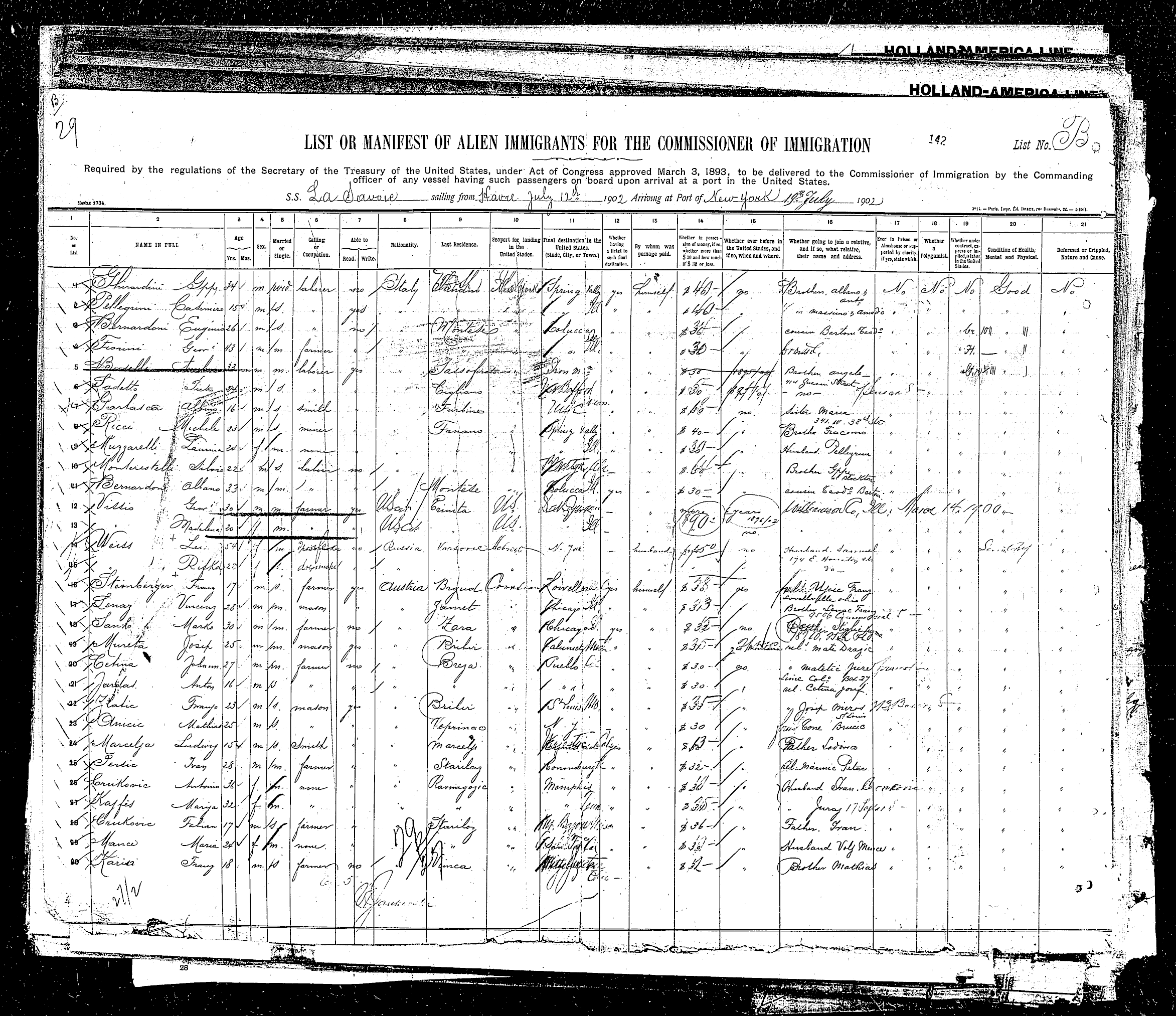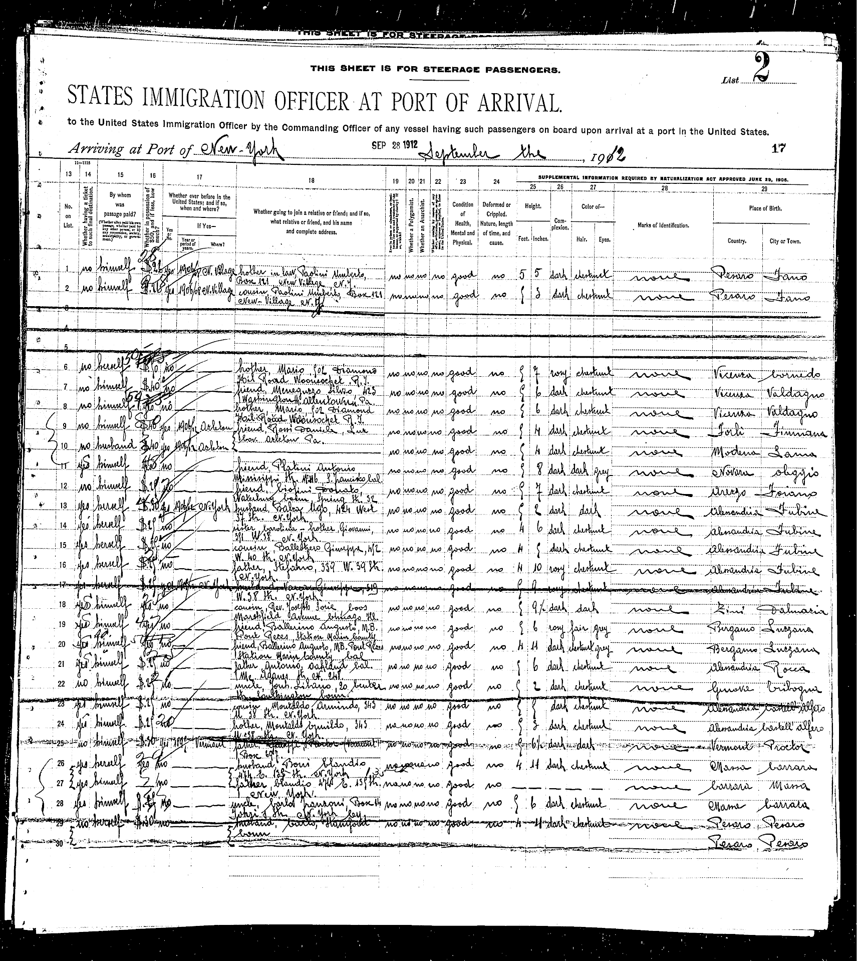 sailed from Le Havre, France, including the Rodeschini family from which my