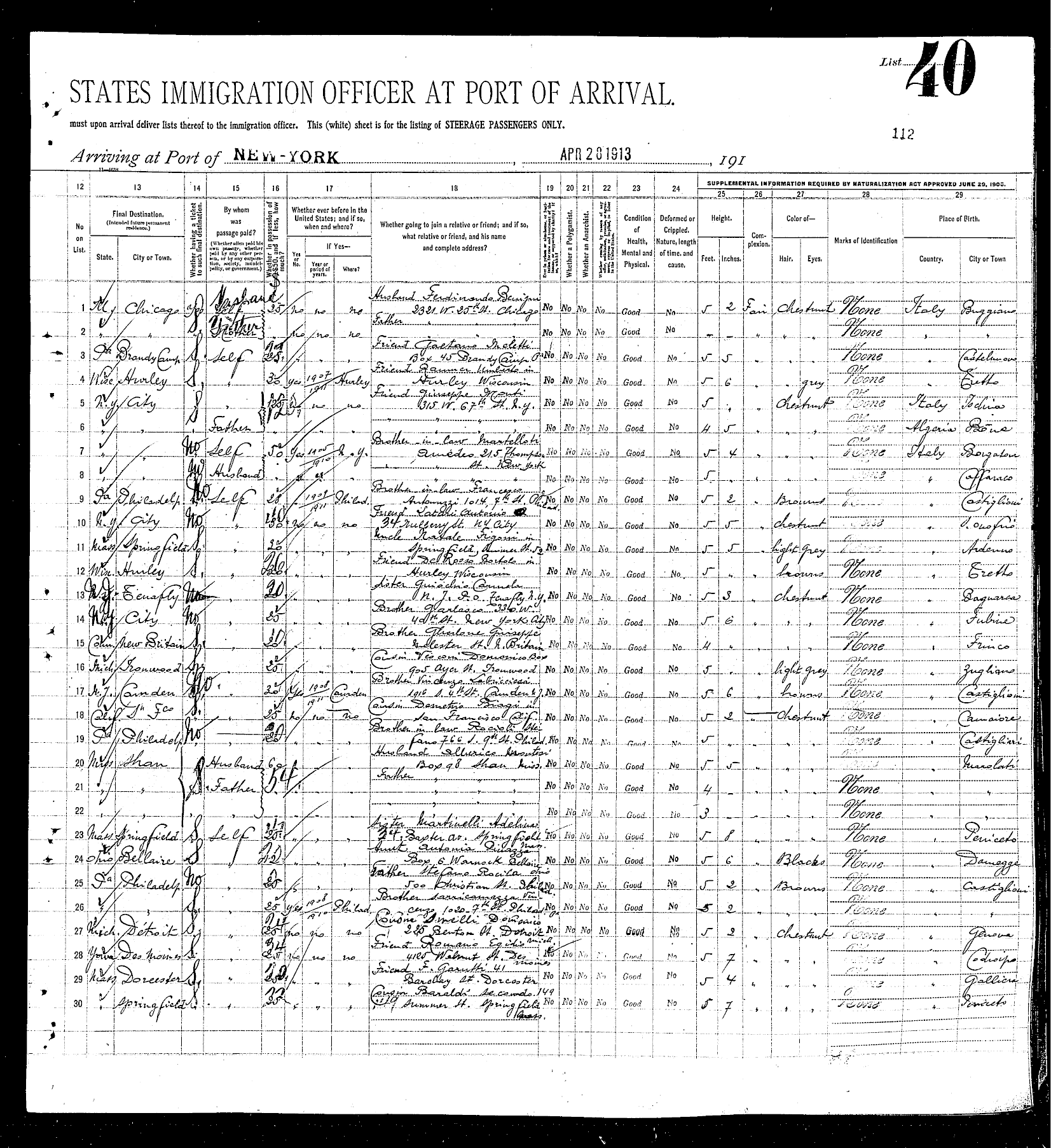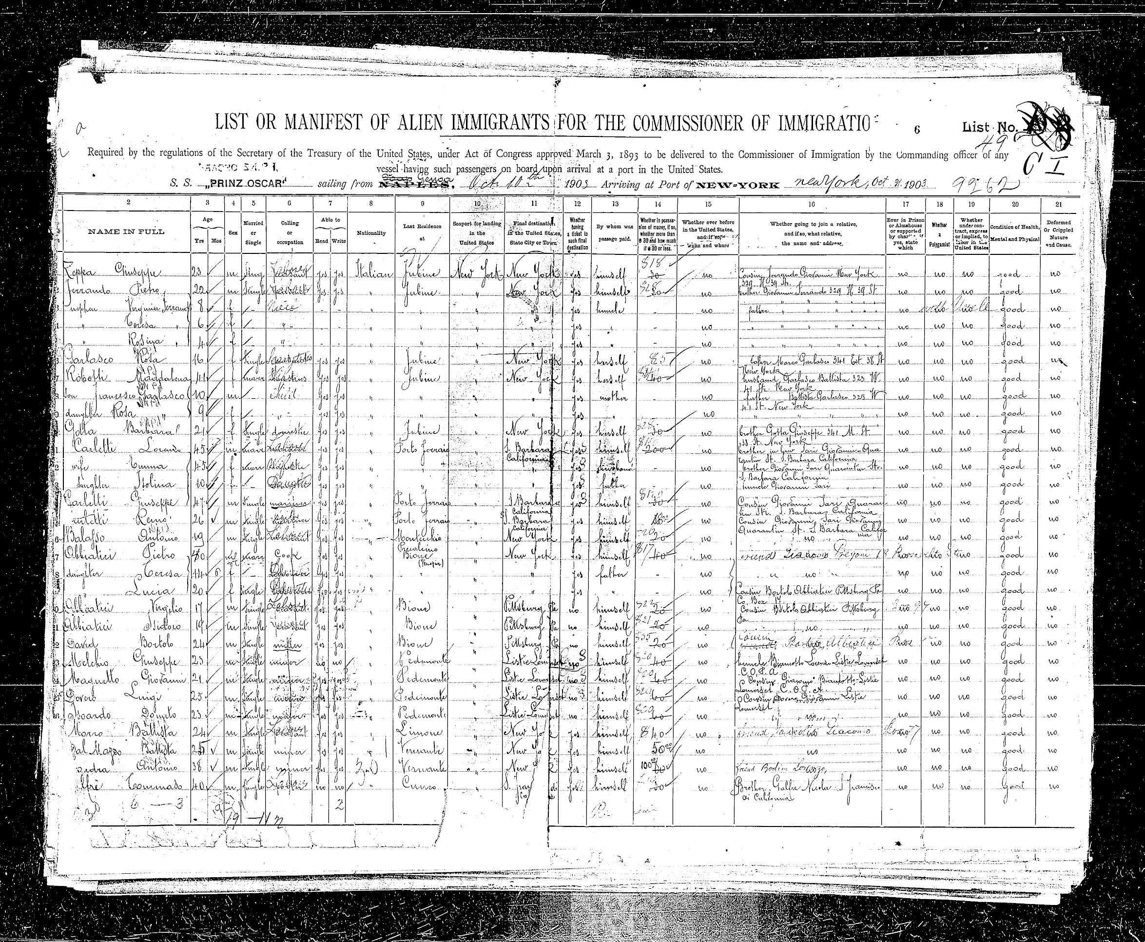 family. A ship manifest is available for almost all members of the