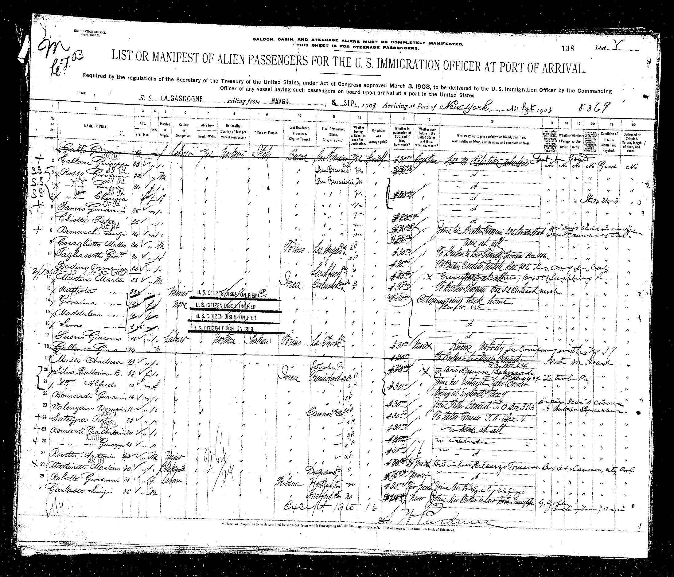 can view copies of the original manifests from the voyages of the Garlasco