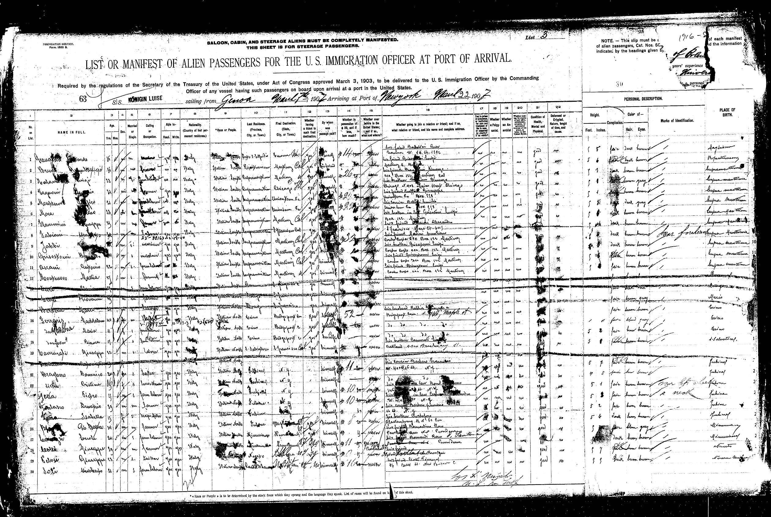 origin. The early manifests are all hand-written, but later they are