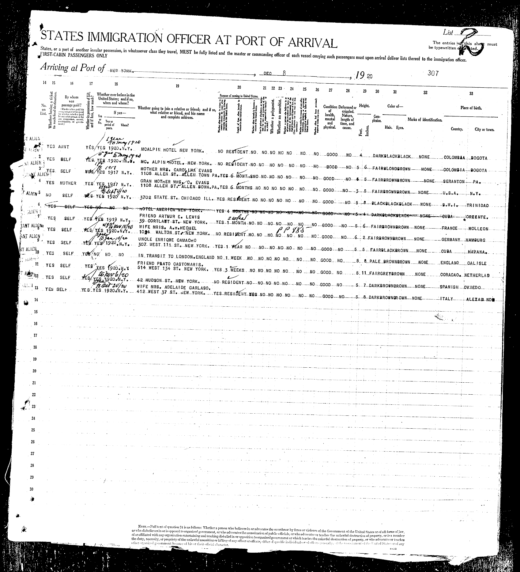 written by clerks in the 1920s as the passengers gave their names